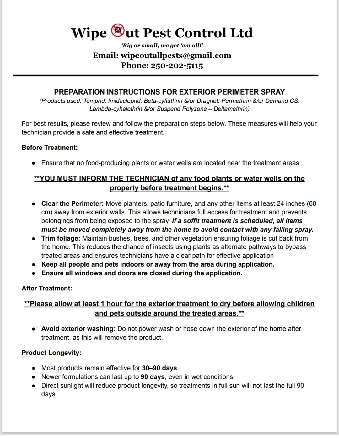 Notice of Perimeter Spraying: Thursday, April 16th 2026. See what you need to do for your unit prior to, during and after the spray here.